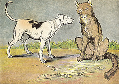 to the wall arguing, and one is vigilantly watching for approaching danger.